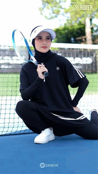 Ini dia Adrea Set Sporty setelan olahraga muslimah yang dirancang khusus untuk Kamu yang ingin Bebas Bergerak Tanpa Khawatir Lekuk Tubuh Terlihat.